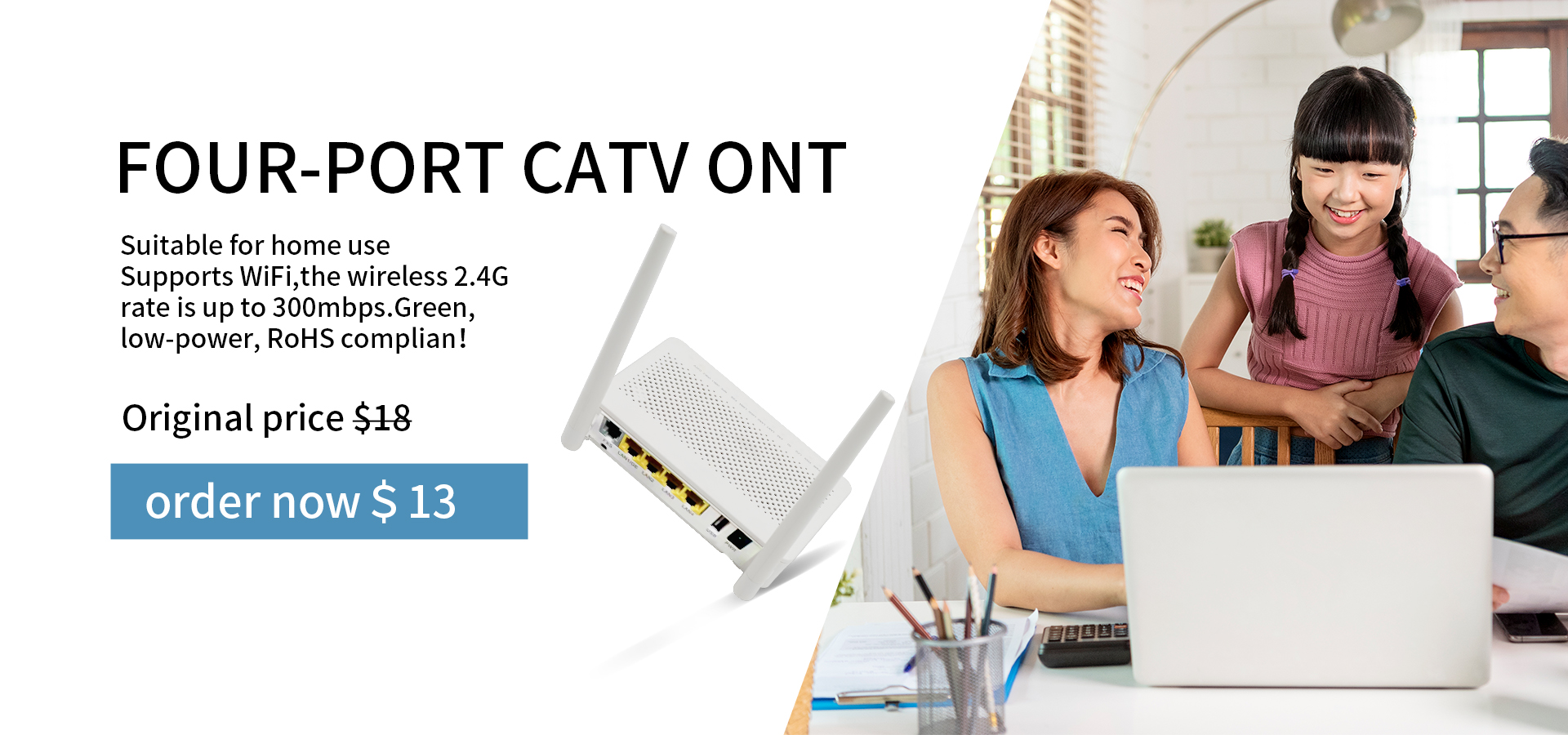 GPon EPon Fiber Modem ONT FTTH 4Ports 1GE 3FE RJ45 VoIP 300Mbps Wifi with USB